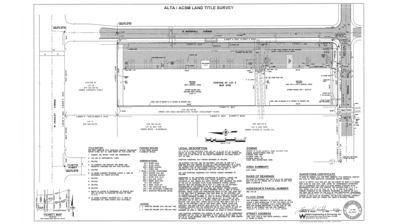 The 5.3 acre parcel required an ATLA for sale purposes and included two large industrial buildings, parking lot, street frontages, utilities, easements, etc.